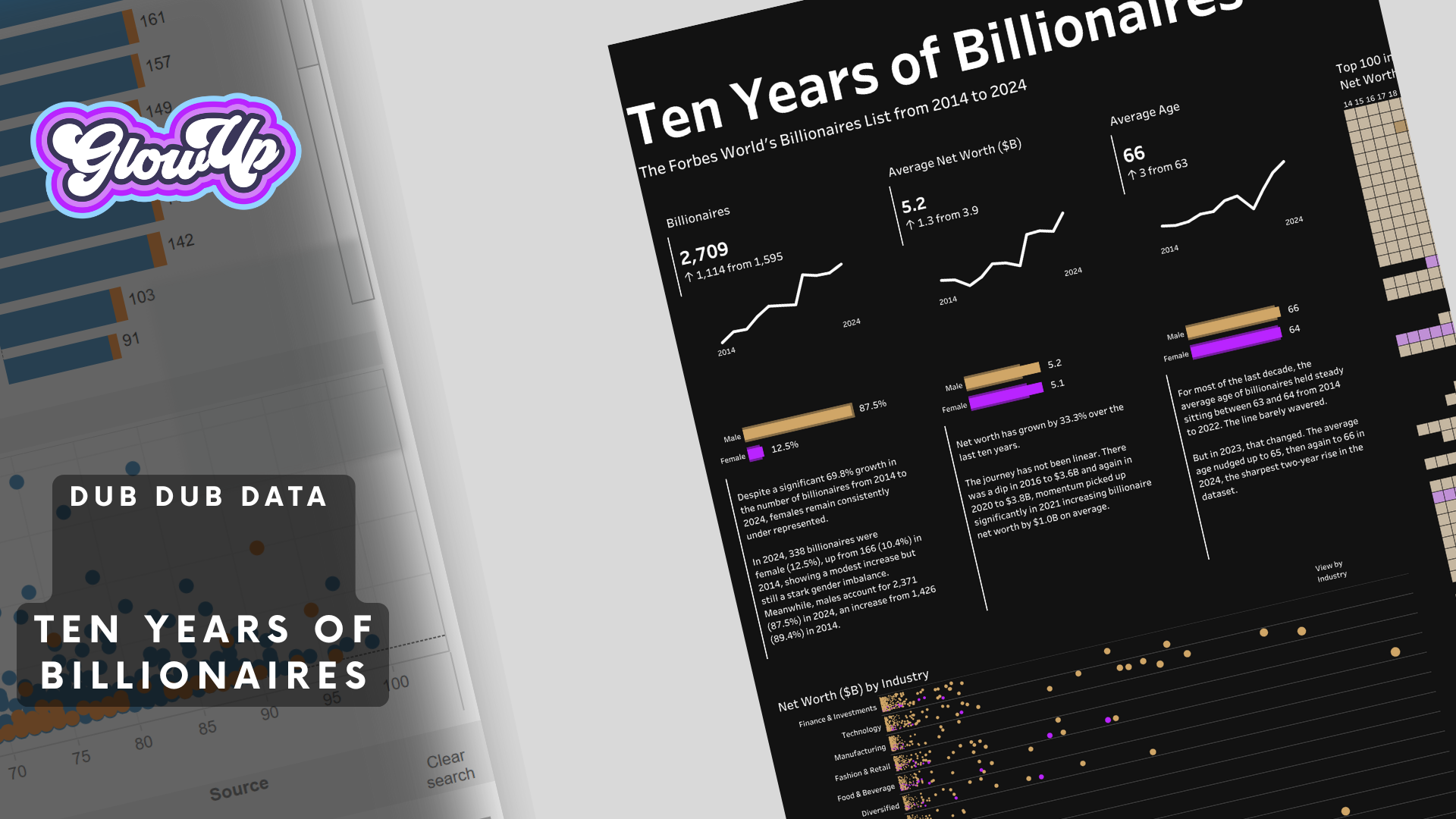 For organisations striving to turn raw data into meaningful insight, even well-built dashboards can fall short as design standards and audience expectations evolve. Our Forbes Billionaires Tableau Viz Glow Up demonstrates this evolution - taking a solid 2015 visualisation and transforming it into a 2025-ready, accessible, story-centric dashboard that goes beyond functional to truly impactful. By incorporating historical trends, clear narratives, thoughtful accessibility, and purposeful design choices, this Glow Up shows how elevating an existing dashboard can unlock deeper understanding, stronger engagement, and a richer experience for decision-makers. You can learn more about the Glow Up, here.
